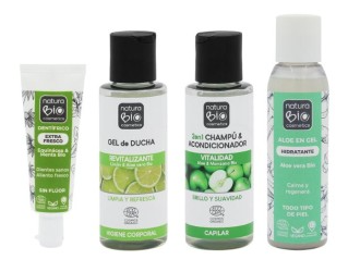 Conté 4 productes d’higiene facial i corporal amb ingredients naturals certificats, aromes fresques i textures agradables. A més, inclou una tovallola facial suau i reutilitzable. Tot en un necesser fet amb material reciclat (R-PET), còmode de portar i respectuós amb el planeta.