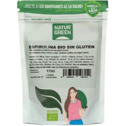 Espirulina en polvo bio sin gluten. Rico en proteínas, hierro, niacina y vitamina B6.